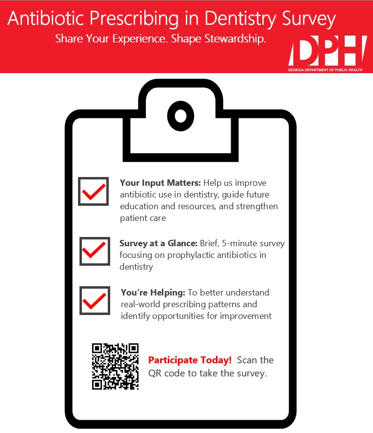 The Georgia Department of Public Health is seeking information about Georgia dentists' prescribing practices. Details about the survey can be found below.